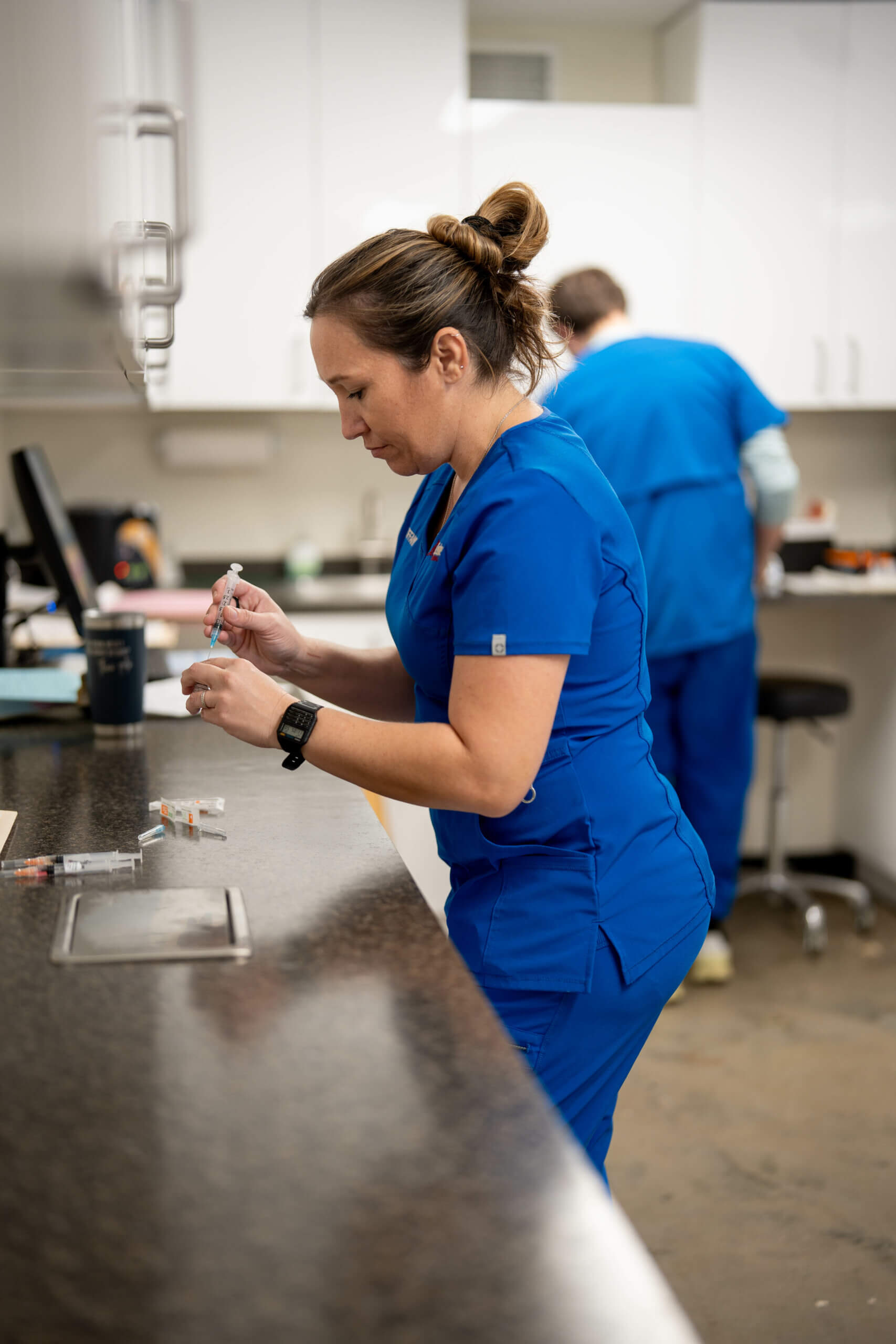 We recommend bloodwork annually on all of our patients . It is important to evaluate our canine patients routinely for heartworms, tick diseases, and intestinal parasites. We also recommend profiles that contain complete blood counts (CBC); Red blood cells (RBC), white blood cells (WBC), and platelets; and a Chemistry to evaluate organ function, proteins, and electrolytes. We offer different panels based on your dog’s age (young wellness, adult wellness, and senior wellness panels).
